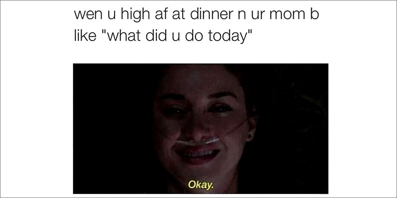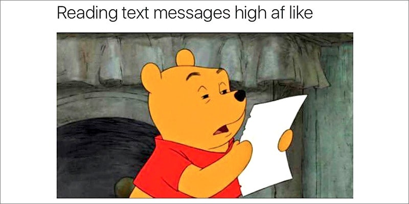 22. If your Uber driver tells you to put the joint out Photo credit 23. When you’re dankrupt, but your friend has your back Photo credit 24. Nice try Photo credit 25. Wake and bake Photo credit 26. Okay Photo credit 27. Smoking weed on the way to smoke more weed Photo credit 28. Getting someone high for the first time Photo credit 29. When you have cottonmouth Photo credit 30. Picture day Photo credit 31. Trying to act normal at work while high Photo credit 32. When you want IHOP, but it’s full of cops Photo credit 33. How you’re feeling right now Photo credit 34. Weed over haircuts Photo credit 35. Your plans for after work Photo credit 36. Reading texts while stoned Photo credit 37. First window or second window? Photo credit 38. When you show up to class, 40 years later Photo credit 39. Wiz Khalifa Photo credit 40. After that tax money hits your account Photo credit 41. What is you doing, baby? Photo credit 42. When you know what you want to say, but autocorrect has a different vision Photo credit Duck off, autocorrect.